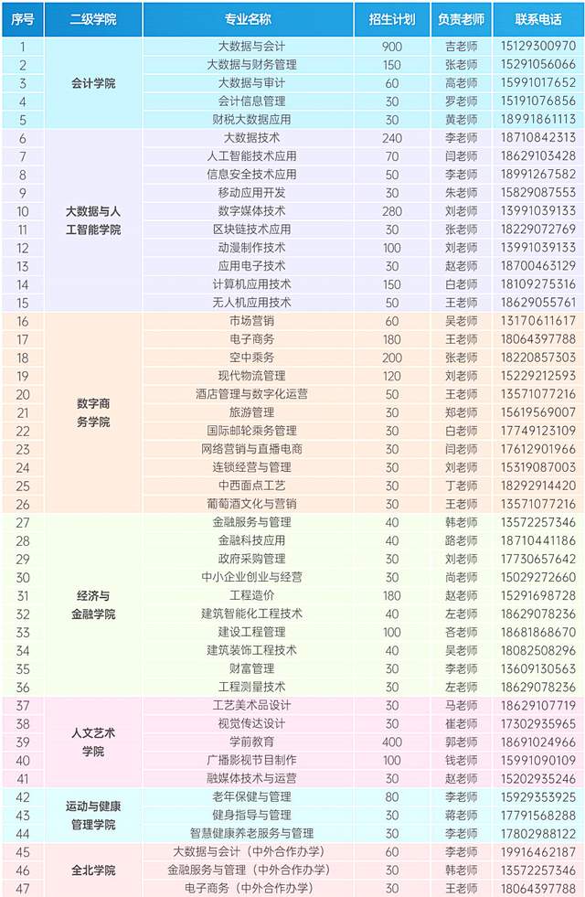 2024年我院分类招生计划为4400人,各专业均招收文史类、理工类、单招类(“三校生”)考生,招生专业和招生计划最终以省教育厅和省招办公布为准。