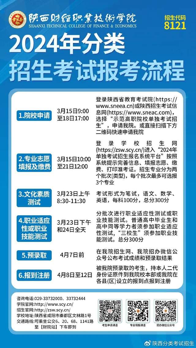 陕西财经职业技术学院2024年分类考试招生报考指南